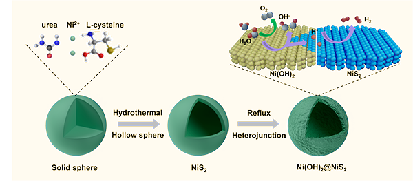 Ni(OH)2, NiS2, heterostructures, oxygen evolution reaction, hydrogen evolution reaction
