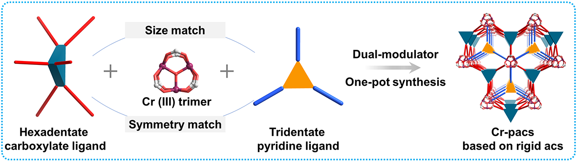 The construction of highly porous metal-organic frameworks (MOFs) is desirable, yet it faces significant challenges including synthetic difficulties and compromised structural stability. Herein we report three new Cr-MOFs, Cr-L1-P1, Cr-L2-P1 and Cr-L3-P2, obtained by facile one-pot synthesis. These materials exhibit partitioned acs (pacs) architecture that combines exceptional porosity with remarkable structural stability, which is achieved by the incorporation of large hexatopic carboxylate ligands and the formation of coordinatively-saturated-chromium(III)-based trimeric secondary building units (SBUs). Experimental results suggest their high thermal stability alongside exceptional chemical stability (> 400oC, acid resistance to 12 M HCl, base resistance to 0.1 M NaOH), placing them among the most stable MOFs. Water vapor adsorption isotherms reveal exceptional saturation uptakes of 0.77, 0.78, and 1.08 gH2O/gsorbent?for Cr-L1-P1, Cr-L2-P1, and Cr-L3-P2, respectively. Notably, no obvious performance degradation was observed after 15 cycling measurements. Cr-L2-P1 exhibits suitable adsorption and desorption inflection points within recommended humidity range (45-65%), high working capacities/efficiencies (WCads?= 70 wt%, WCdes?= 65 wt%,?ηads?= 90%,?ηdes?= 83%) and effective working capacities/efficiencies (WCeff?= 64 wt%,?ηeff?= 82%), making it a promising candidate for indoor humidity control.