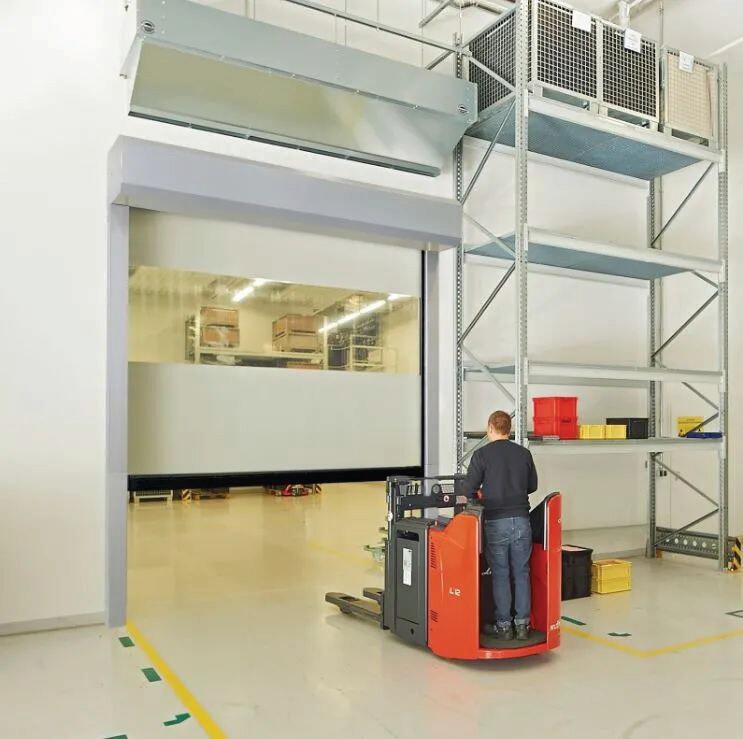 門簾采用聚氯乙烯 PVC 材質(zhì),內(nèi)襯高強(qiáng)度織物夾層,具備抗撕裂保護(hù)性能。門簾中間可選擇透明觀察視窗,用于判斷對(duì)向情況,以免發(fā)生撞擊事故。輕便結(jié)實(shí)的門簾配合勁動(dòng)力的進(jìn)口快速門專用電機(jī),保證門快速頻繁啟閉通行。