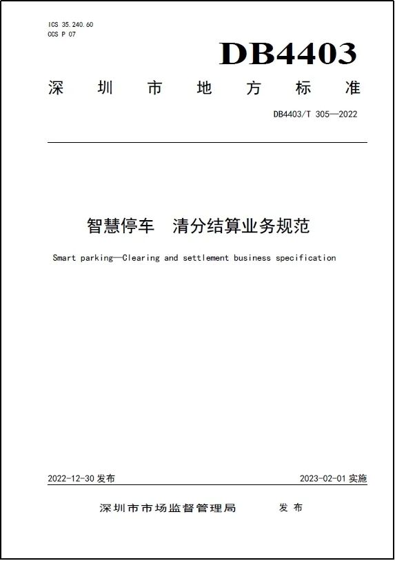 地方標(biāo)準(zhǔn)DB4403/T 305-2022 《智慧停車 清分結(jié)算業(yè)務(wù)規(guī)范》界定了城市停車清分結(jié)算中清分結(jié)算平臺架構(gòu)、業(yè)務(wù)邏輯及數(shù)據(jù)傳輸要求,填補了國內(nèi)停車清結(jié)算業(yè)務(wù)等方面標(biāo)準(zhǔn)的缺失。