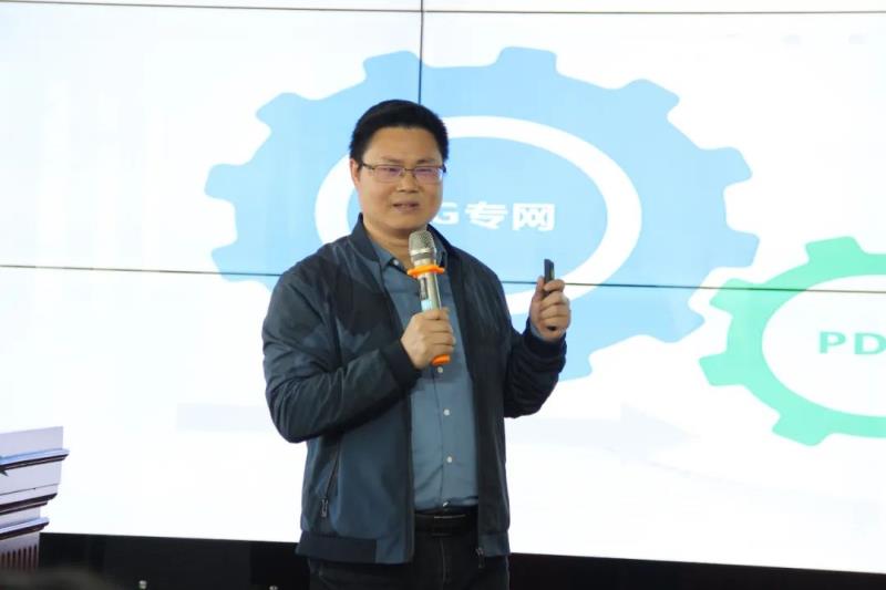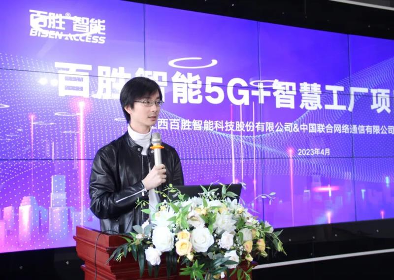 百勝智能“5G+智慧工廠”項(xiàng)目副總工程師熊麒超做項(xiàng)目匯報(bào)。