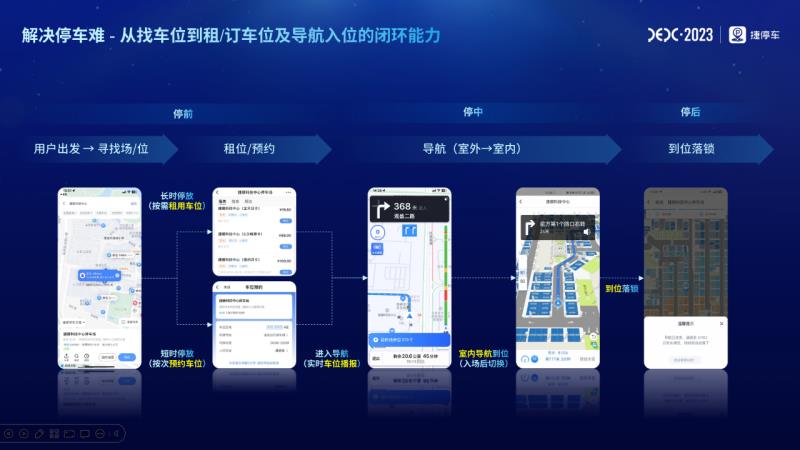 依照車(chē)主出行“停車(chē)前-中-后”的脈絡(luò)來(lái)看:車(chē)主在出發(fā)前,打開(kāi)捷停車(chē)“找車(chē)位”服務(wù)尋找場(chǎng)/位,長(zhǎng)時(shí)停放可按需在車(chē)位優(yōu)選購(gòu)買(mǎi)套餐,短時(shí)或單次停放可按次預(yù)約車(chē)位,隨后進(jìn)入導(dǎo)航,驅(qū)車(chē)過(guò)程中還可以獲取實(shí)時(shí)余位播報(bào);進(jìn)入停車(chē)場(chǎng)后,基于捷停車(chē)場(chǎng)景覆蓋和建設(shè)能力以及地圖合作伙伴的合作共創(chuàng),哪怕是地下停車(chē)場(chǎng)也可不受信號(hào)強(qiáng)弱影響,無(wú)縫切換到室內(nèi)導(dǎo)航,實(shí)現(xiàn)導(dǎo)航到位、到位落鎖;室內(nèi)定位導(dǎo)航還能解決場(chǎng)內(nèi)停車(chē)、找車(chē)、定位難的問(wèn)題,幫助車(chē)主反向?qū)ぼ?chē)、導(dǎo)航離場(chǎng)。
