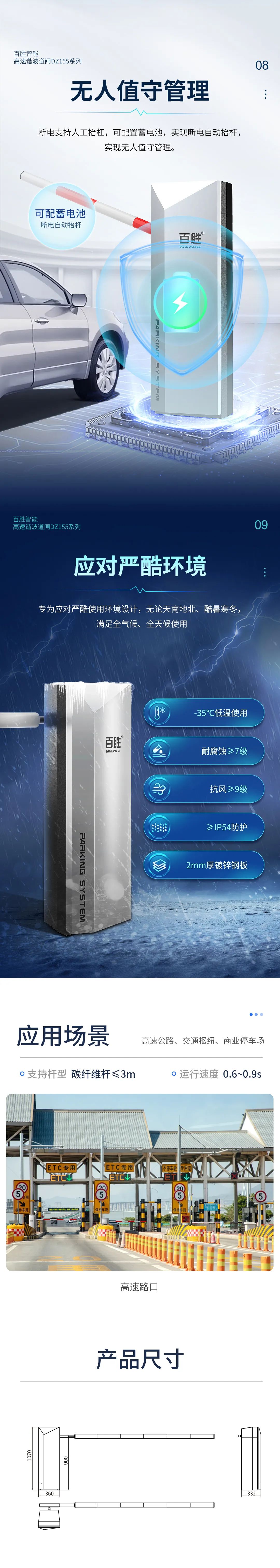 高速、高負(fù)載:0.6S高速運(yùn)行,起落桿迅速,大扭矩,運(yùn)行平穩(wěn)
