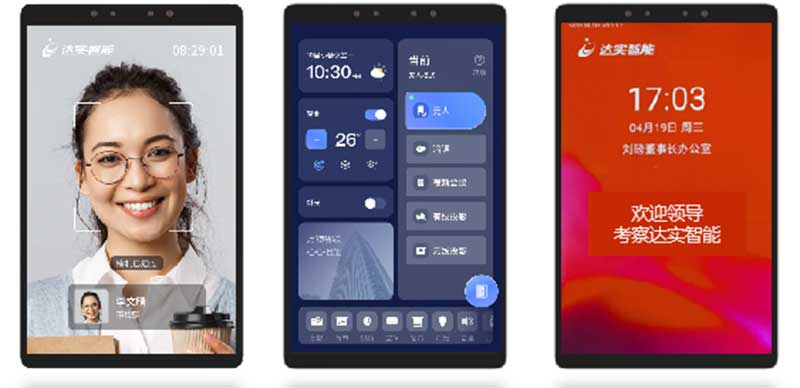 舉一個(gè)例子,達(dá)實(shí)自主研發(fā)的10寸空間場景交互屏,通常門禁產(chǎn)品叫做安防產(chǎn)品,刷臉開門,安全防范。圣賢思想告訴我們,不僅要抑制人的小我,更要激揚(yáng)人心中的大我,所以我們把它變成一個(gè)信息推送的窗口,把安防產(chǎn)品從抵制壞人升級(jí)到歡迎客人,整座大廈就變成了一個(gè)溫暖的空間。