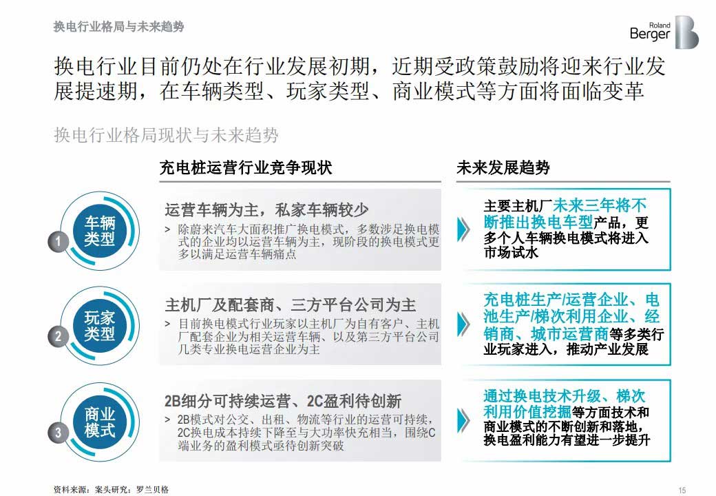 充電和換電模式在車輛和電池適用性、電網(wǎng)及土地資源要求、投資強(qiáng)度等方面的差異,決定了未來5年國(guó)內(nèi)新能源汽車補(bǔ)能市場(chǎng)仍將維持充電為主、換電為輔的格局。但在資本、主機(jī)廠、政策等的推動(dòng)下,換電模式在部分高端乘用車和運(yùn)營(yíng)類車輛的應(yīng)用推廣將明顯加速。