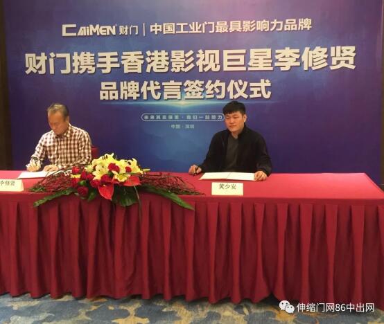 五年的奮斗成就了財(cái)門一線品牌的地位,但黃少安沒有停下前進(jìn)的步伐。新年伊始,黃少安又繁忙起來,簽約香港影視巨星李修賢為財(cái)門的品牌形象代言人;簽約央視,財(cái)門2018正式登陸央視,成為央視展播品牌;財(cái)門與中國伸縮門網(wǎng)、中出網(wǎng)簽訂品牌推廣戰(zhàn)略合作。