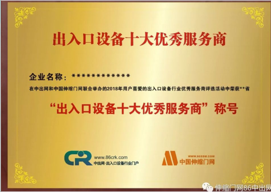 3月1日,由中出網(wǎng)和中國伸縮門網(wǎng)共同主辦的2018”出入口設(shè)備十大優(yōu)秀服務(wù)商“大型評(píng)選活動(dòng)正式拉開帷幕。活動(dòng)以“新零售 新服務(wù) 新價(jià)值”為主題,旨在弘揚(yáng)誠信、品質(zhì)的服務(wù)理念,推動(dòng)行業(yè)健康有序發(fā)展,為出入口設(shè)備用戶的購買和安裝維修提供一個(gè)參考選擇,同時(shí)給出入口環(huán)境區(qū)域服務(wù)商提供充分展示自身實(shí)力和服務(wù)品質(zhì)的平臺(tái)。