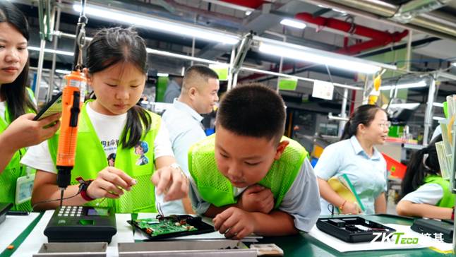 在專業(yè)技術(shù)員指導(dǎo)下,他們化身 “小小工程師”,親手組裝智能考勤設(shè)備:從識別零部件到精確咬合接口,從調(diào)試程序到功能測試,每一步都考驗著對細(xì)節(jié)的把控,每一次嘗試都飽含探索的激情。當(dāng)親手組裝的設(shè)備成功啟動時,成就感如陽光般綻放于臉龐,科技的種子也在實踐中悄然生根發(fā)芽。