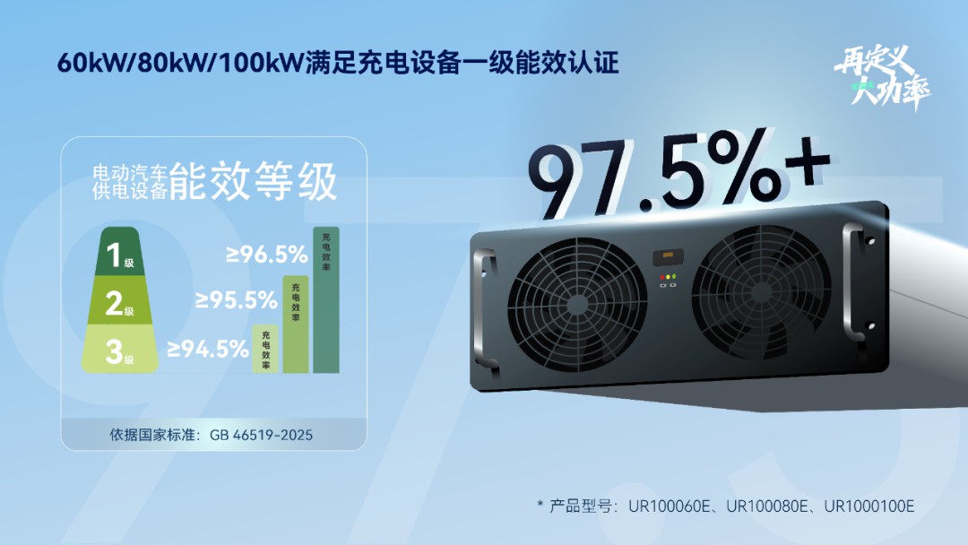 圍繞當(dāng)前重卡充換電、兆瓦超充等大功率需求,優(yōu)優(yōu)綠能推出的60kW/80kW/100kW/125kW系列第三代超大功率充電模塊,有效支撐充換電基礎(chǔ)設(shè)施向大功率超充、高效靜音、高可靠的高質(zhì)量發(fā)展路徑轉(zhuǎn)型。模塊峰值效率≥97.5%,在400V、600V、800V多個(gè)電壓段以及不同負(fù)載比例下,綜合加權(quán)充電效率>97%,完全超越新國標(biāo)充電設(shè)備一級(jí)能效要求。