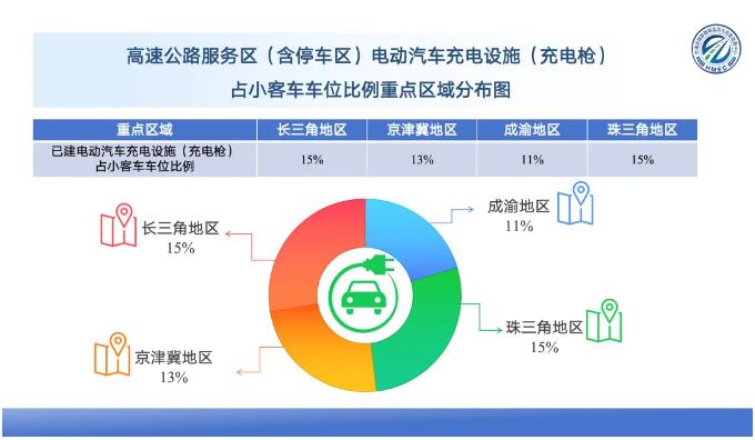 值得關(guān)注的是,已建電動汽車充電槍占小客車車位比中,長三角、成渝、京津冀、珠三角地區(qū)比例分布在11%-15%之間。即100個車位里面只有11-15個是充電車位。意味著其高速公路的充電需求還有很大的增長空間。