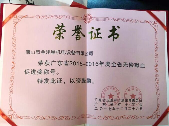 6月29日,廣東省佛山市政府舉行了以“為他人著想,捐獻(xiàn)熱血,分享生命”為主題的世界獻(xiàn)血者日活動(dòng)?;顒?dòng)上,金建星公司及董事長(zhǎng)黃錦山分別榮獲單位和個(gè)人的廣東省無(wú)償獻(xiàn)血促進(jìn)獎(jiǎng)稱(chēng)號(hào)。據(jù)了解,金建星智能科技有限公司連續(xù)八年,每年都自發(fā)組織無(wú)償獻(xiàn)血行動(dòng),黃錦山董事長(zhǎng)以身作則,帶領(lǐng)著全公司員工及家人踴躍參與無(wú)償獻(xiàn)血行動(dòng)。