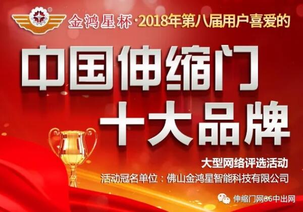“金鴻星杯·2018第八屆用戶喜愛的中國伸縮門十大品牌”大型評選活動(dòng)于2018年11月30日正式啟動(dòng),活動(dòng)將通過用戶的投票和綜合評價(jià)評選出2018年伸縮門十大品牌榜單?!?a target="_blank">點(diǎn)擊這里報(bào)名參評】