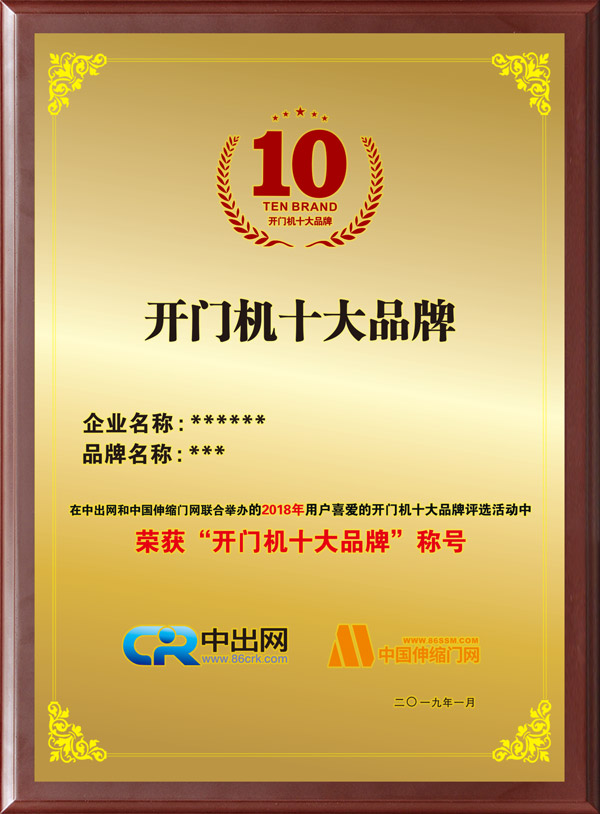 2018年度中國開門機十大品牌