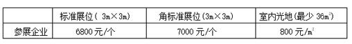 室外光地:(36 M2起租):500元/ M2 、 (室內(nèi)外光地自付施工管理費(fèi):¥10元/ M2)特裝展臺(tái)限高6米;