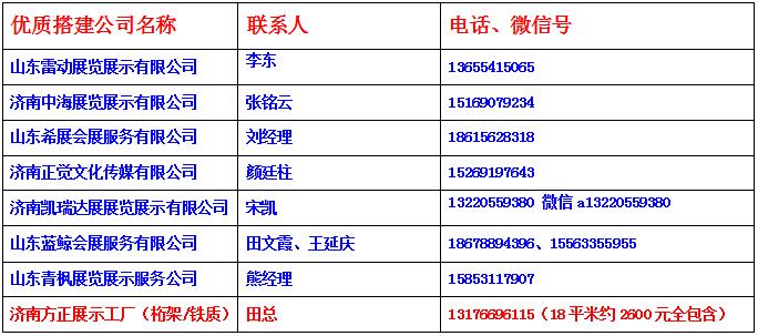 友情提示:2021年濟南安防暨警用裝備博覽會沒有主場搭建,為了提供更好超值服務,組委會精選了以下搭建展示公司,以下公司是歷年來口碑好,價格合理,效率高的公司,如有糾份,組委會可以為此協(xié)調;(近年來每年都有一些廣告公司、搭建公司打著組委會指定搭建商的旗號,如有糾紛或上當,組委會概不負責任)