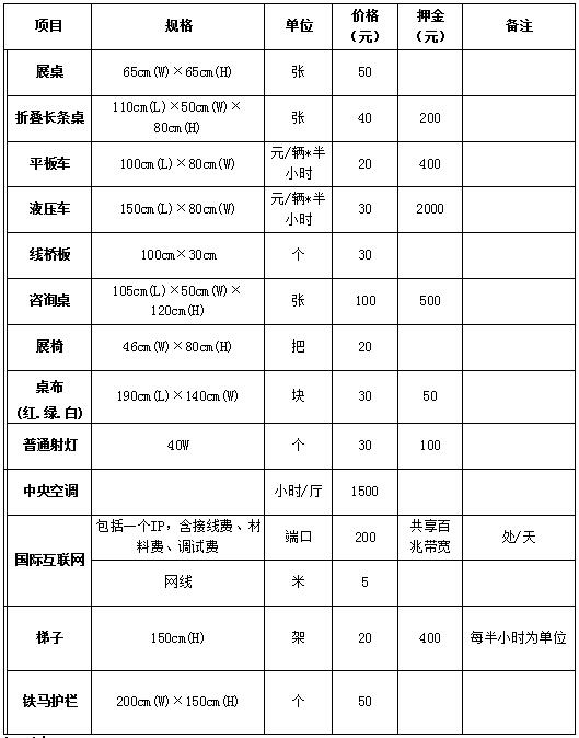 山東國際會展中心商業(yè)運營有限公司服務部收費標準