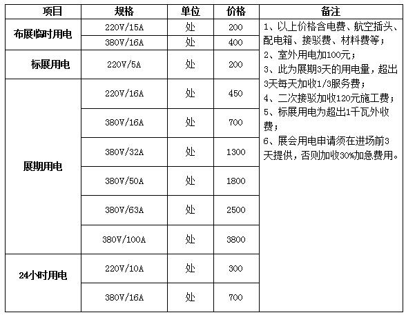 d、展期用電收費:請詳細閱讀《山東國際會展中心商業(yè)運營有限公司服務價格表》第五項:電箱接駁服務費