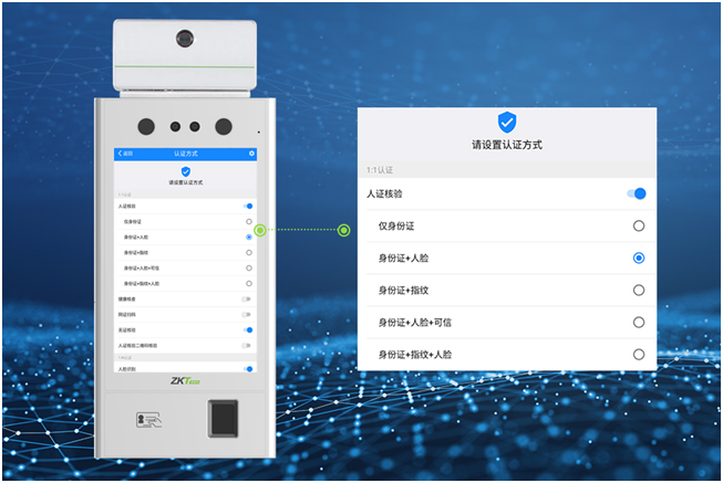 ID900作為門禁系統(tǒng)中的識別設(shè)備,其在安全通行方面并未放松,為了更好確保區(qū)域安全,該設(shè)備可根據(jù)用戶需求及場景需要,靈活設(shè)置多種認(rèn)證模式及安全等級。