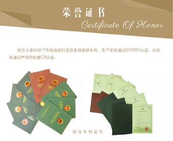 阿爾卡諾智能科技有限公司是走輪式平開門機(jī)的鼻祖,擁有17年的生產(chǎn)經(jīng)經(jīng)驗(yàn)。在產(chǎn)品技術(shù)研發(fā)、設(shè)計(jì)等領(lǐng)域累計(jì)獲得30多項(xiàng)國(guó)家專利,建立健全的質(zhì)量管理體系,先后通過了ISO2012質(zhì)量體系認(rèn)證、中檢所質(zhì)量檢驗(yàn)以及嚴(yán)苛的歐盟CE認(rèn)證,執(zhí)行遠(yuǎn)高于行業(yè)標(biāo)準(zhǔn)的企業(yè)標(biāo)準(zhǔn)。