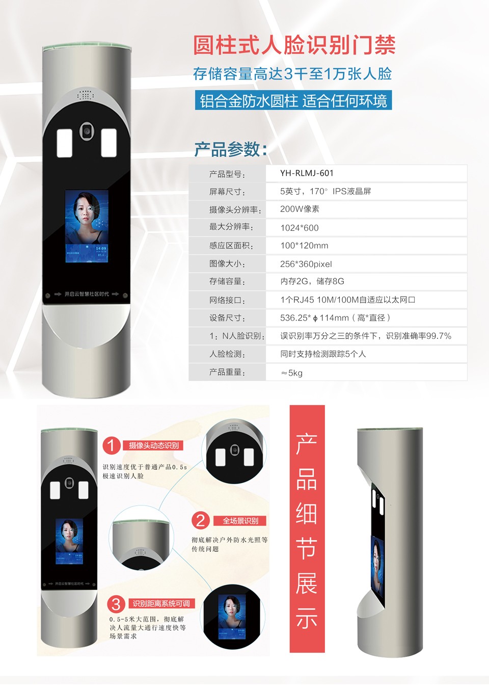 產(chǎn)品名稱:圓柱型人臉識別終端