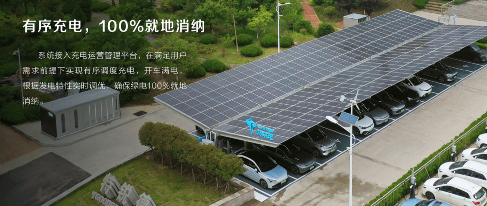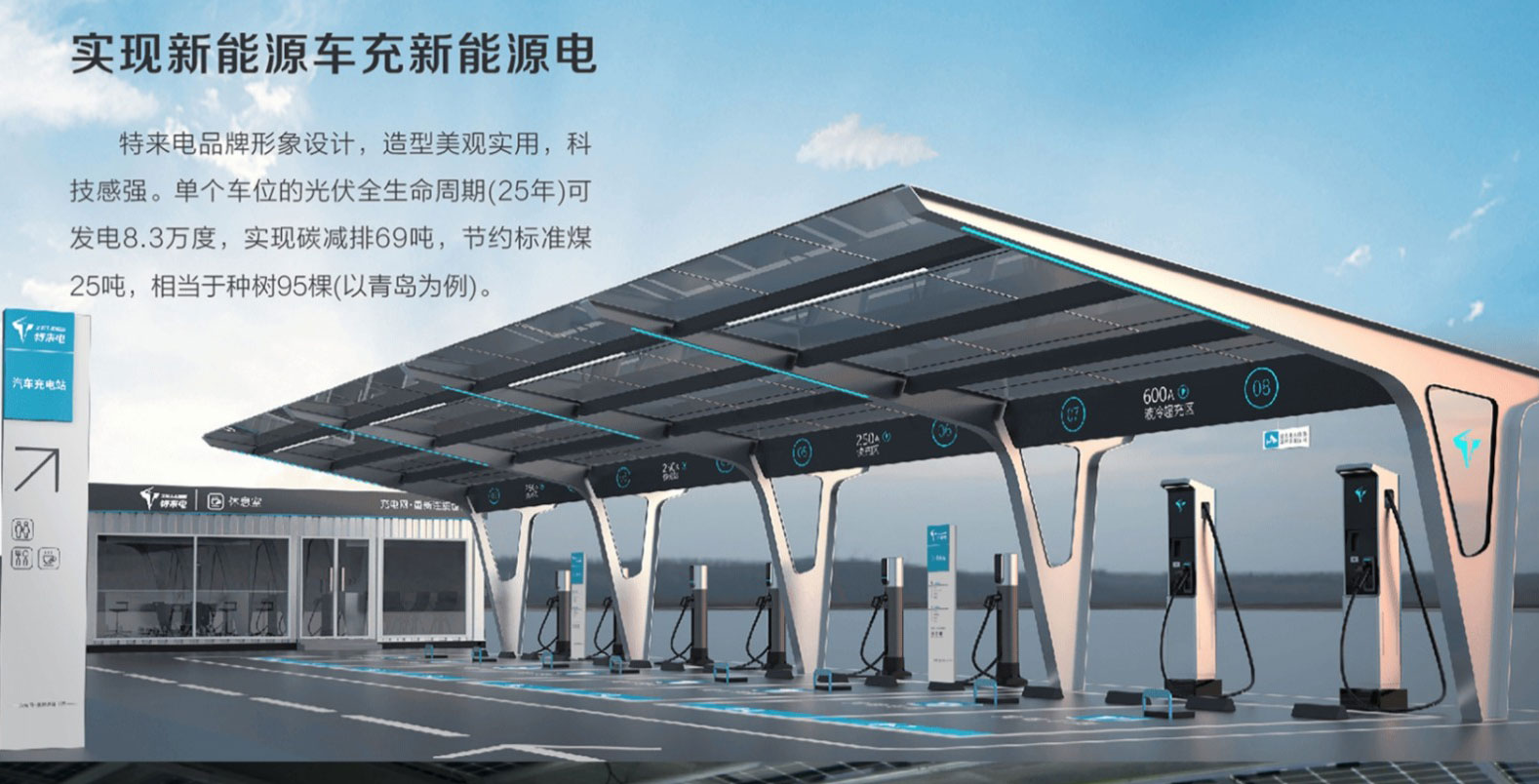特微網(wǎng)是為了響應(yīng)國家碳中和政策,結(jié)合特來電品牌形象,設(shè)計的光伏+雨棚+充電的一體化解決方案。方案充分利用了充電站雨棚空間,在實現(xiàn)遮風(fēng)擋雨的同時,引入了綠色清潔能源,實現(xiàn)新能源車充新能源電,可有效減少充電高峰期的電網(wǎng)負荷,為電網(wǎng)實現(xiàn)削峰填谷的作用。
