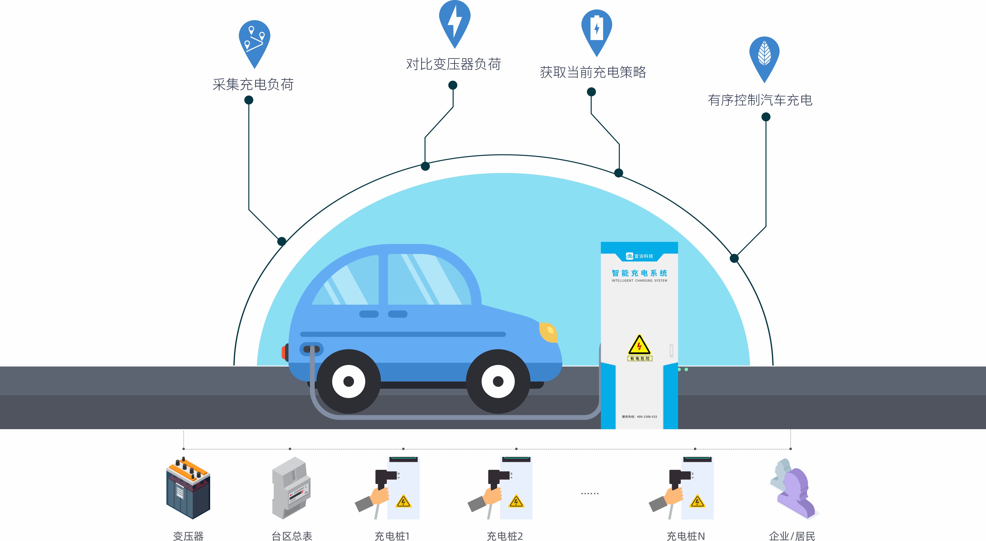 通過對小區(qū)線路進(jìn)行統(tǒng)一改造、安裝智能充電系統(tǒng),充分合理利用小區(qū)剩余負(fù)荷,以有序 形式錯(cuò)峰充電,盡可能滿足更多新能源車主安樁和充電需求,更安全,更便捷。