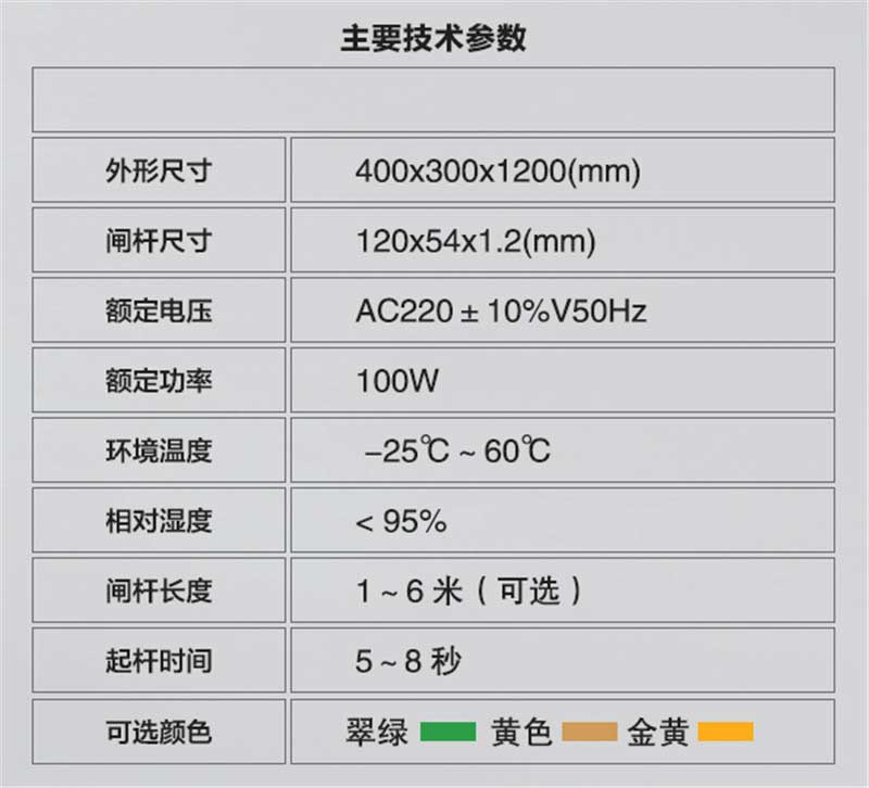 9.閘桿升降平穩(wěn),可靠、升降時間為2-6秒。