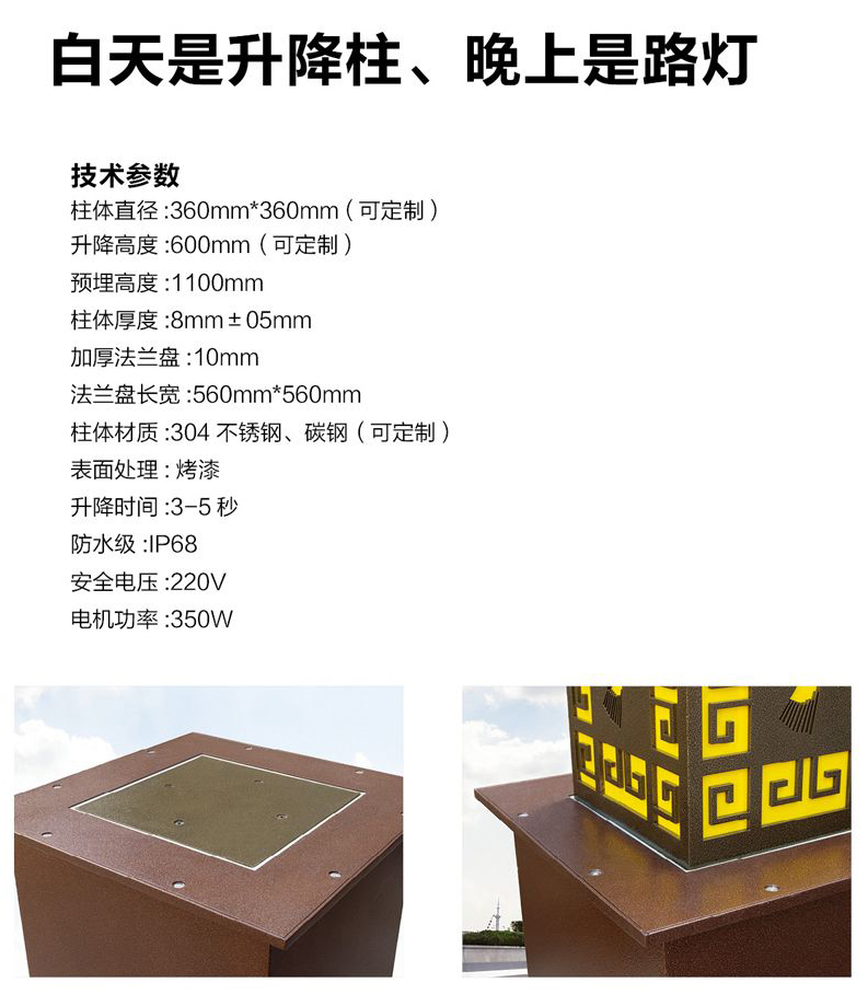溫馨提醒:選購方型全自動升降柱 CHG-007產品,請仔細瀏覽本頁面。如您還有疑問,請撥打服務電話,我們將免費為您提供方型全自動升降柱 CHG-007的款式、價格、生產廠家、安裝維修等方面的咨詢服務。