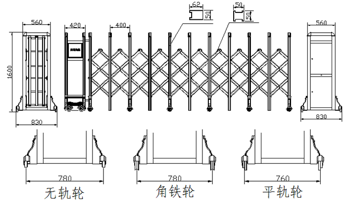 南北德信金甲衛(wèi)士鋁合金伸縮門(mén)門(mén)體采用公司自行加工優(yōu)質(zhì)不銹鋼和鋁型材等材料制作,主框架采用立體四維平行原理鉸接,伸縮靈活。伸縮門(mén)主要由門(mén)體、驅(qū)動(dòng)器、控制系統(tǒng)構(gòu)成。驅(qū)動(dòng)器采用特種電機(jī)驅(qū)動(dòng),蝸輪蝸桿減速,并設(shè)有手動(dòng)離合器,停電時(shí)可手動(dòng)啟閉,控制系統(tǒng)有臺(tái)控及遙控兩種??膳鋫錆L動(dòng)顯示屏,顯示個(gè)性文字內(nèi)容。還可選配備智能紅外線探頭防碰撞裝置,運(yùn)行時(shí)遇人或異物20-30CM可自動(dòng)返回運(yùn)行,從而保障車輛及行人的安全。適用于工礦企業(yè)、機(jī)關(guān)院校、娛樂(lè)場(chǎng)所、賓館飯店等庭院圍墻門(mén)。起到美化環(huán)境、改善企業(yè)面貌、提升企業(yè)形象;有助于營(yíng)造文明社會(huì)、文明企業(yè)、文明城市氣氛;