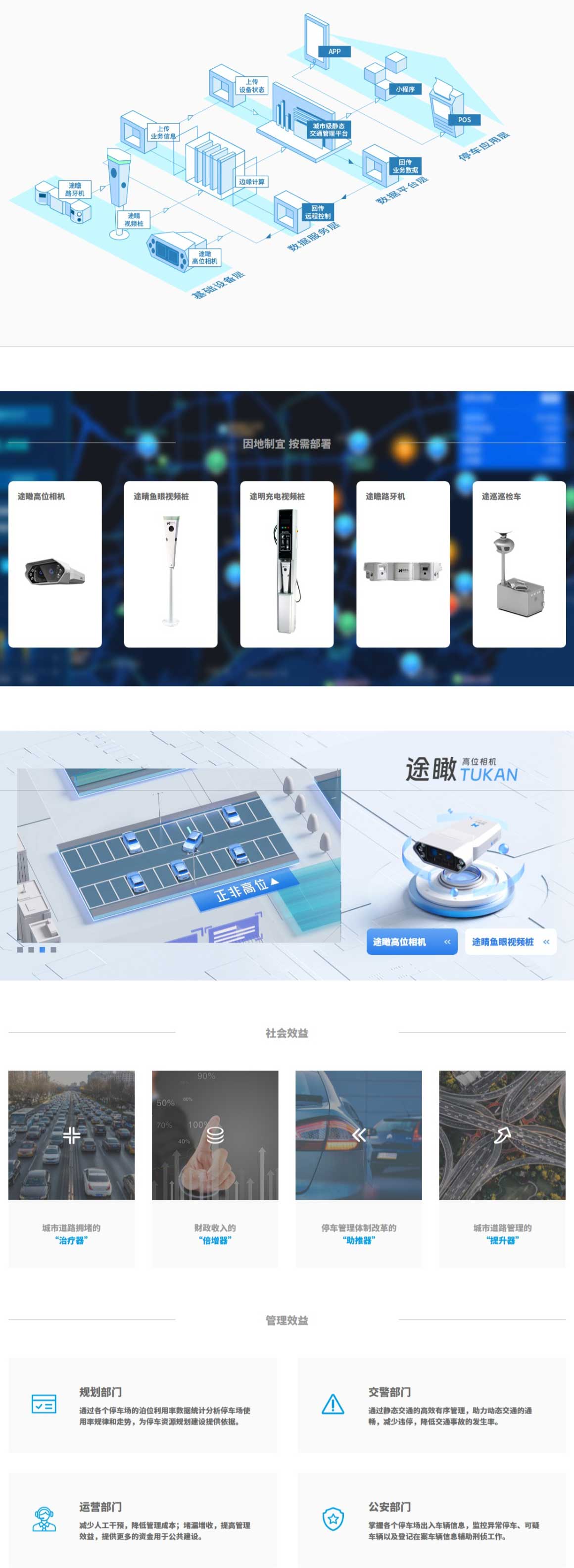 通過(guò)途瞰高位相機(jī)、途睛視頻樁、途瞻路牙機(jī)等前端智能識(shí)別設(shè)備采集停車(chē)數(shù)據(jù),與靜態(tài)交通管理平臺(tái)進(jìn)行數(shù)據(jù)交互,實(shí)現(xiàn)對(duì)路內(nèi)停車(chē)場(chǎng)景的數(shù)字化、平臺(tái)化、可視化管理。