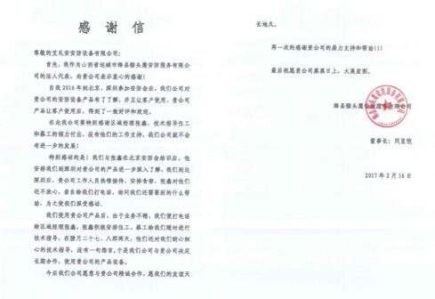 艾禮安收到客戶感謝信