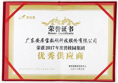 安居寶再次榮獲“2017年度碧桂園集團優(yōu)秀供應商”。這項殊榮離不開安居寶十年如一日的專注與專業(yè),充分體現(xiàn)了碧桂園集團對安居寶的肯定以及對未來合作市場的信心。至此,安居寶與碧桂園集團建立全面深入,互利共贏的戰(zhàn)略合作關系已達10余年。此外,公司近兩年推出的新產(chǎn)品“安居小寶”智能家居也受到了碧桂園的高度認可,目前為止,“安居小寶”智能家居已在碧桂園旗下300余個樓盤推廣使用。