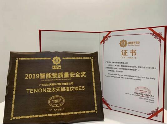 2019“葵花獎”智能鎖質(zhì)量安全獎授予 亞太天能E5指紋鎖 可謂真正實至名歸!