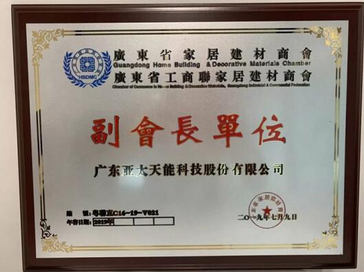 亞太天能榮任廣東省家居建材商會,廣東省工商聯(lián)家居建材商會副會長單位,由工業(yè)設(shè)計大師,亞太天能合伙人洗燃全權(quán)代表上臺接受授牌。