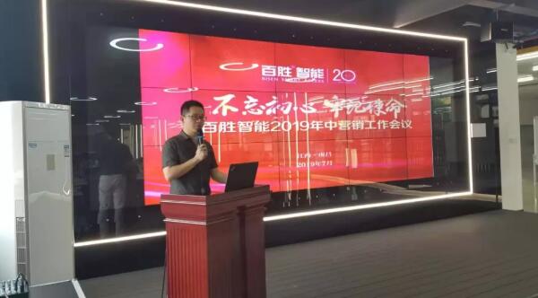 2019年7月6日,“百勝智能2019年中營(yíng)銷工作會(huì)議”在百勝小藍(lán)基地隆重召開(kāi)。百勝智能董事長(zhǎng)劉潤(rùn)根先生、副總經(jīng)理劉子堯先生,百勝智能、艾視特等公司中高層領(lǐng)導(dǎo),及全國(guó)31個(gè)區(qū)域經(jīng)銷商代表共同出席會(huì)議!