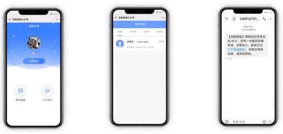 訪客可直接在公眾號上登記信息、申請預約,經(jīng)由管理員線上審批后,后臺自動發(fā)送短信提醒及時審批,通過后訪客實現(xiàn)掃碼進入。