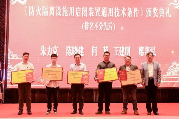 會上,多瑪凱拔繼續(xù)獲評《防火隔離設施用啟閉裝置通用技術條件》標準起草單位并領取授權獎牌。