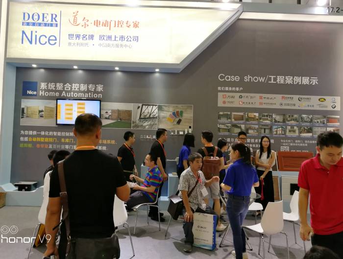 此次廣州建博會設(shè)智能、定制、系統(tǒng)、設(shè)計四大主題展區(qū),共吸引了2500多個品牌商參加。道爾公司攜其代理的【意大利品牌開門機(jī)】Nice,以最佳陣容參展。