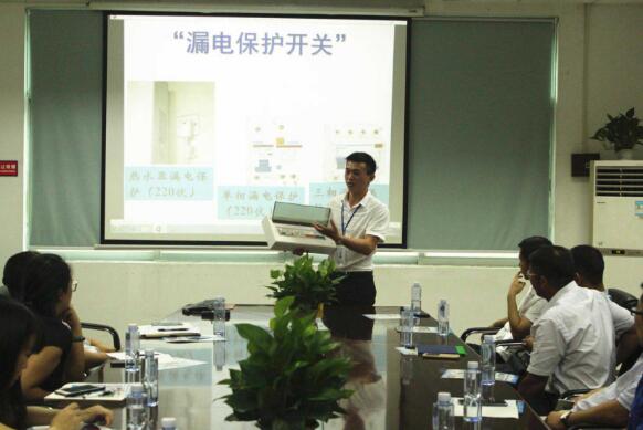 培訓(xùn)師展示漏電保護(hù)開關(guān)裝置