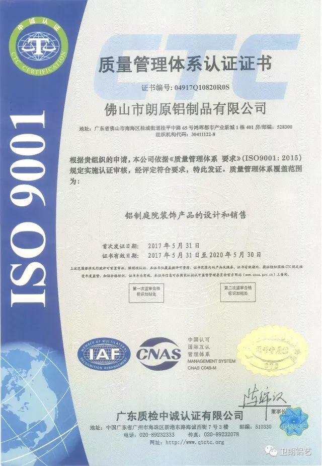 目前,我公司擁有ISO9001質(zhì)量管理體系、OHSAS18001職業(yè)健康安全管理體系、ISO14001環(huán)境管理體系三大管理體系的認(rèn)證證書(shū),完成了三證合一的體系認(rèn)證。