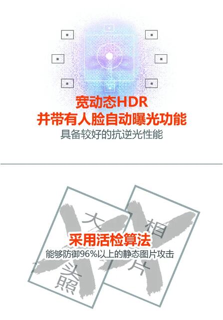 產(chǎn)品采用活檢算法,能夠防御96%以上的靜態(tài)圖片(手機大頭照和照片)攻擊,防止外人使用照片隨意出入場所,確保場內(nèi)安全。