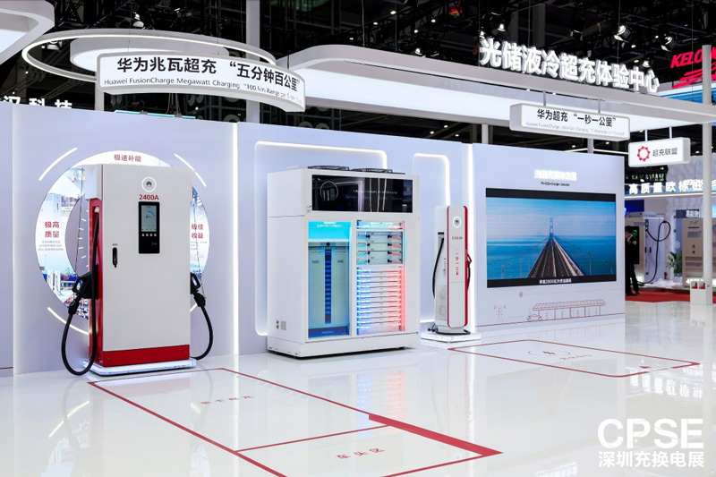 華為超充與兆瓦超充產(chǎn)品展臺(tái)