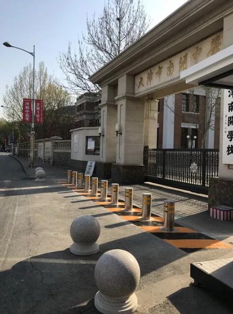 南開中學所有的校園出入口都配備升降地柱守護,有效防范車輛沖撞事故的發(fā)生。