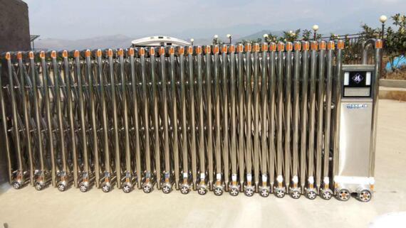 杭州伸縮門門體采用優(yōu)質(zhì)不銹鋼及鋁合金專用型材制作,采用平行四邊形原理鉸接,伸縮靈活行程大,給萬科桂語東方項(xiàng)目不一樣的體驗(yàn)。