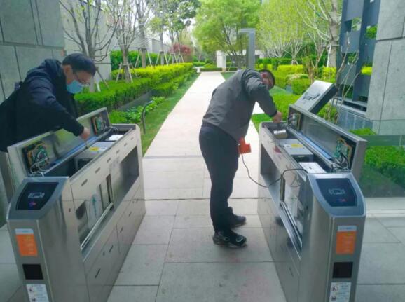 捷順工作人員在融創(chuàng)壹號院檢修道閘