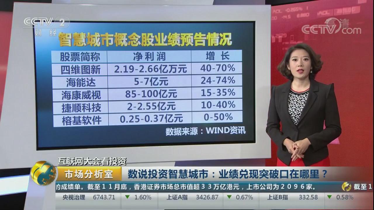 近日世界互聯(lián)網(wǎng)大會閉幕,人工智能化身城市大腦,助力智慧城市建設,曾經(jīng)的智慧城市熱,為何在今年的A股遇冷?投資智慧城市股,業(yè)績兌現(xiàn)突破口又在哪里?央視財經(jīng)頻道《市場分析室》為大家進行了專題欄目分析。