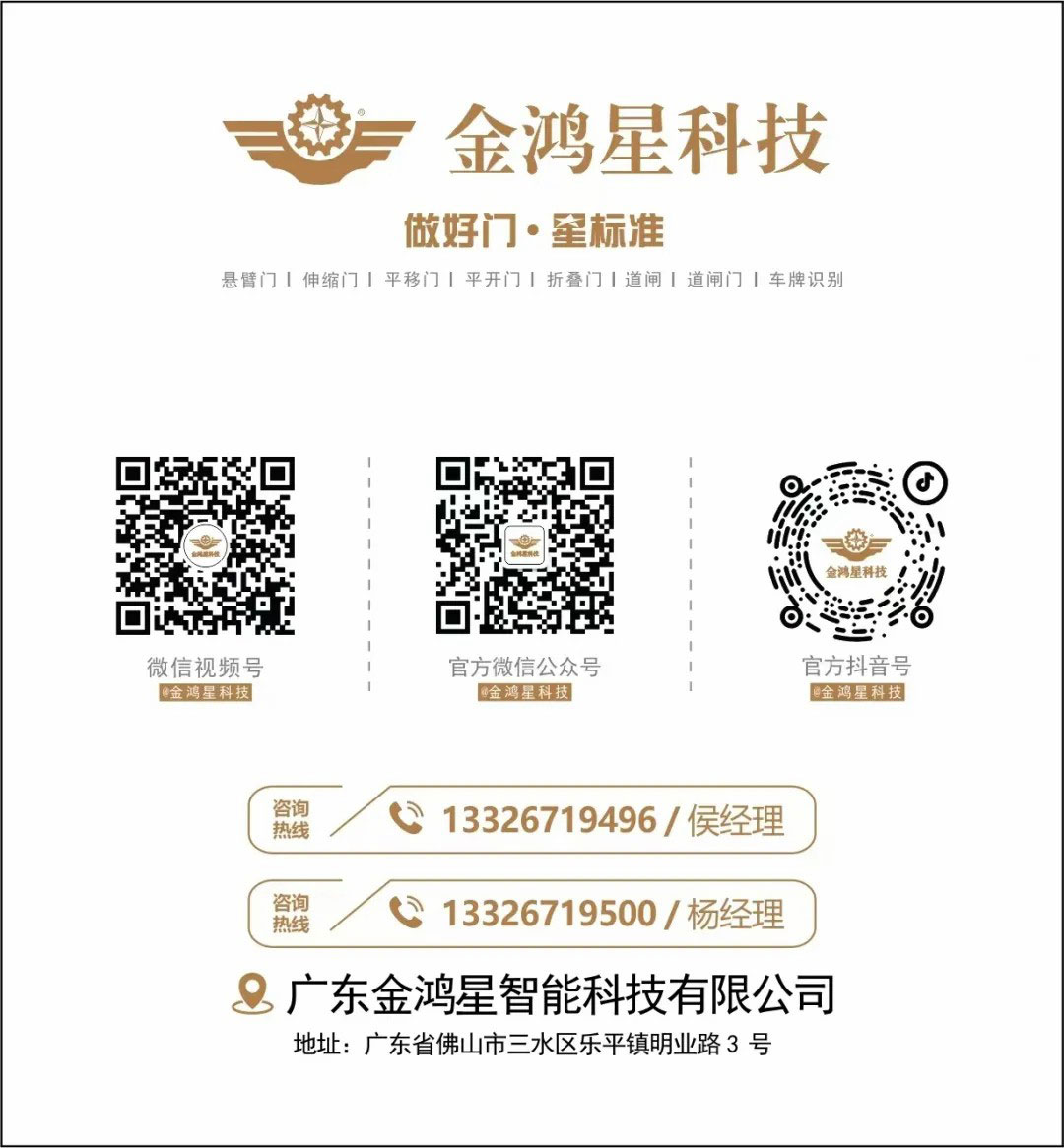 作為國家高新技術(shù)企業(yè)、廣東省知識(shí)產(chǎn)權(quán)示范企業(yè),金鴻星始終以技術(shù)研發(fā)為核心驅(qū)動(dòng)力。公司擁有200多項(xiàng)專利(含24項(xiàng)發(fā)明專利),主編《戶外電動(dòng)門安全要求》《戶外智能平移門》等多項(xiàng)行業(yè)標(biāo)準(zhǔn),并發(fā)布《中國戶外電動(dòng)門安全與智能發(fā)展白皮書》,為行業(yè)規(guī)范化發(fā)展樹立標(biāo)桿。其產(chǎn)品以24V安全電壓驅(qū)動(dòng)系統(tǒng)、智能遠(yuǎn)程控制等創(chuàng)新技術(shù),徹底解決了傳統(tǒng)電動(dòng)門的安全隱患,為全球50萬+用戶提供戶外智能安全大門一站式解決方案。