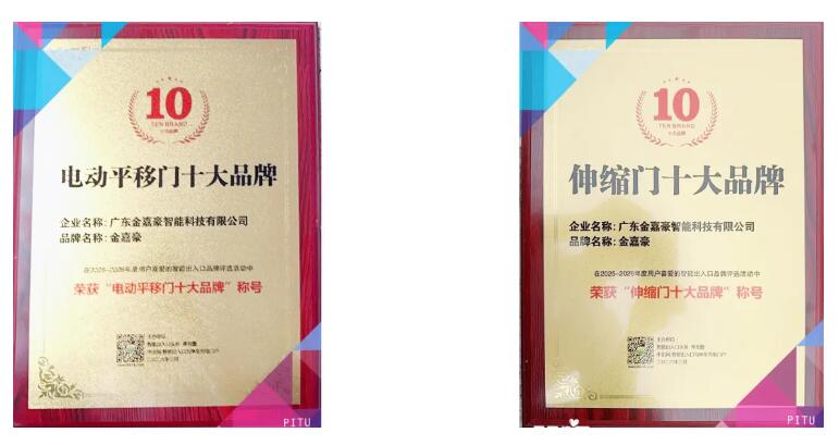 第十五屆智能出入口與停車充電行業(yè)十大品牌評(píng)比頒獎(jiǎng)盛典在佛山順利舉行。“金嘉豪”品牌憑借卓越的產(chǎn)品品質(zhì)、領(lǐng)先的技術(shù)創(chuàng)新及深厚的市場口碑,從數(shù)百家參選企業(yè)中脫穎而出,榮獲“伸縮門十大品牌”及“電動(dòng)平移門十大品牌”兩項(xiàng)殊榮。