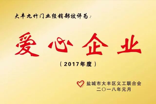 吳建東說(shuō):儒家講“成人達(dá)己”,幫助別人的同時(shí)也成就自己。九竹電動(dòng)門公司大豐門業(yè)經(jīng)銷部還被評(píng)為2017年度“愛(ài)心企業(yè)”,全體九竹人都要向我們大豐經(jīng)銷商學(xué)習(xí),做一些對(duì)社會(huì)有用的公益活動(dòng)。
