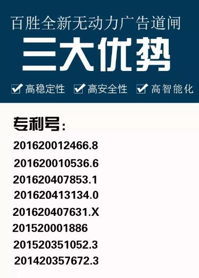廣告桿為無動力驅(qū)動,在任何狀態(tài)下均可以起桿,廣告桿升降的同時,頁片同時翻轉(zhuǎn),滿足高效通行要求;
